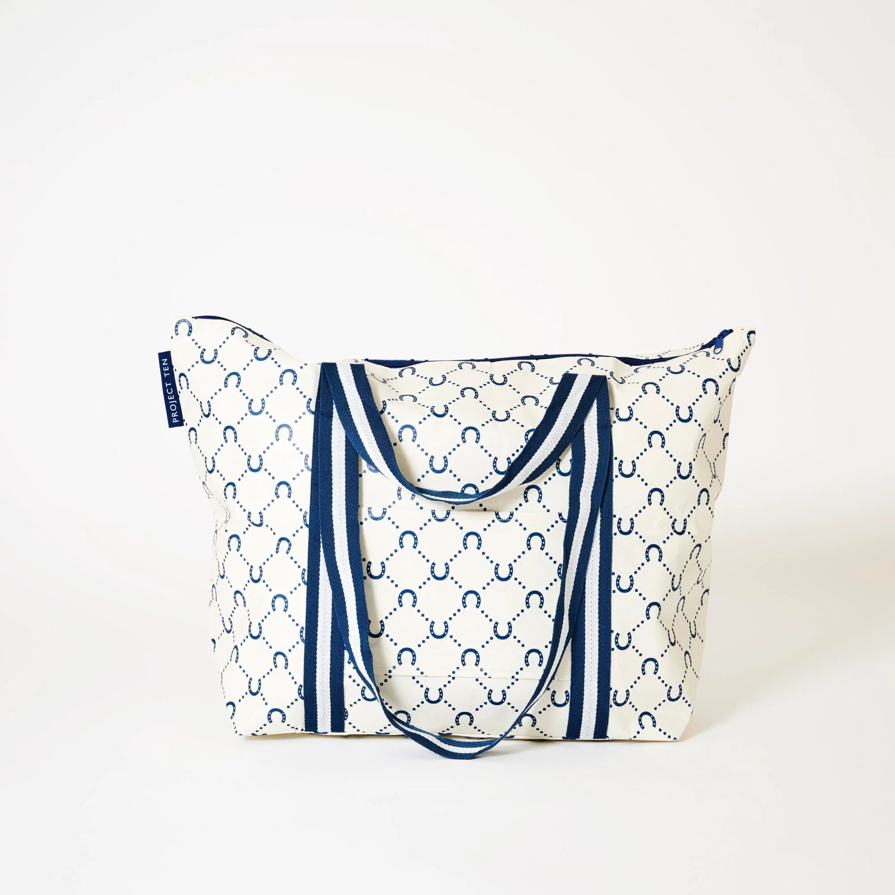 Zip Medium Tote: Navy Horseshoe