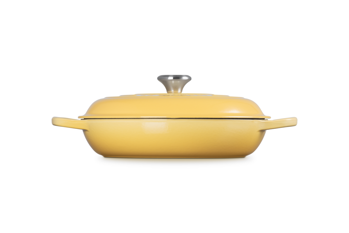 This shallow casserole is no exception. The large flat shape and shallow sides make it perfect for browning meat and vegetables, simmering casseroles, stir frying, cooking one-pan meals & baking.